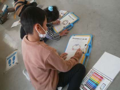 約半年間、お世話をしてきたアサガオが世界に一つだけのリースになり、子供たちはうれしそうにながめながら、最後の観察カードを書いていました。