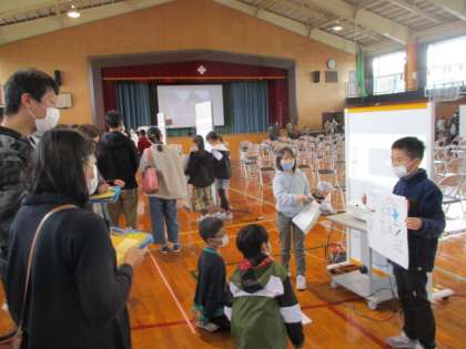 家族の前で、一生懸命にこれまでの成果を発表しました。発表のあとには、保護者のみなさんから意見や質問をいただき、さらに詳しく説明する姿が印象的でした。