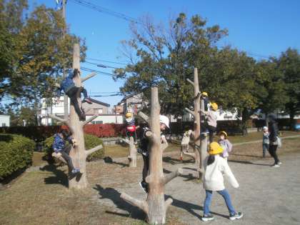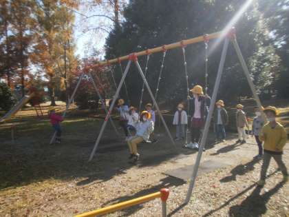 たくさんの秋を見つけたあとは、公園の遊具を使ったり、虫取りや鬼ごっこをしたりして遊びました。