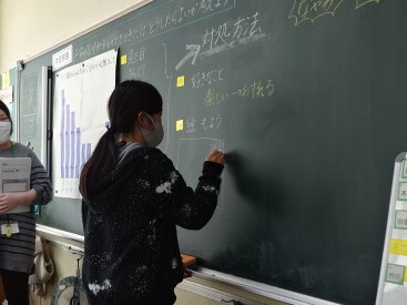 保健では、悩みや不安をかかえたときにどうしたらよいか考えました。対処方法を一つ選び、1週間実践することにしました。