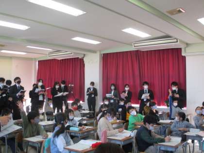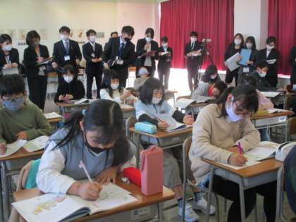 2組では、多くの先生方に道徳の授業を見ていただきました。参観用に広い教室に移動しての授業でしたが、子供たちは一生懸命、「広い心とは何か」について考えを深めました。授業後には、参観した多くの先生方から、子供たちのがんばりをほめていただきました。