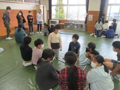 今週水曜日のわくわくタイムは、2年生と5年生とでペア学年活動です。そこで5年生は、どんなゲームをすれば2年生と楽しむことができるか話し合いました。「ジェスチャ−ゲームだとみんなが参加できるかな」「部屋の広さを考えて、走らず危険ではない遊びは何かな」「どんなルールにすれば安全で盛り上がる。実際にやってみようか」など、各自がいろいろな立場や状況を考えながら、話合いを進めています。