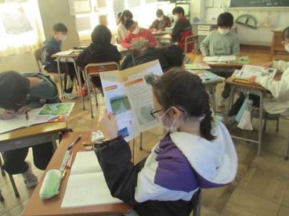 社会科では、工業生産について学んだ後、富山県で発生した四大公害の1つ、イタイイタイ病について学びを進めています。美しい水田地帯に生活をしているたくさんの人々が苦しむこととなったこの公害が、被害が出始めてから全面解決まで100年以上の年月を要したことについて、子供たちは「病気の名前は知っていたけれど、富山で起きているなんて…」「なぜ、こんなに時間がかかったの?」「どんな時代だったのか、詳しいことを調べたい」「被害にあった人たちはどんなに苦しかっただろう…」と、資料を見たり話合いをしたりしながら、様々に感じたようです。イタイイタイ病について、今後も学習を進めていきたいと思います。