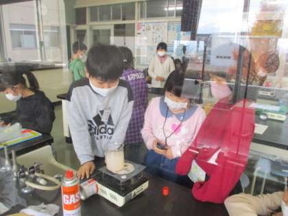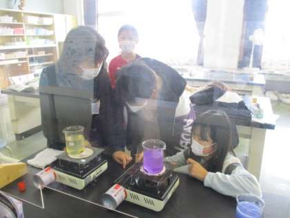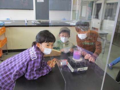示音インクや絵の具で水の温まり方を調べました。色の変化や動き方に注目して歓声があがりました。