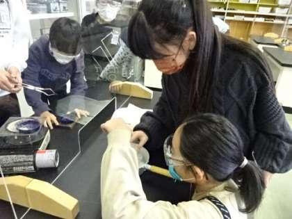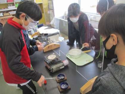 今日の実験では、「水にとけた物は、どのようにすれば取り出すことができる?」について考えました。「水溶液を冷やすと出てくる?」「蒸発させれば水溶液の水が気体になるから、中の塩やミョウバンが出てくるかな?」など、仲間と予想を立てながら実験を進めました。溶かす水の量や温度、物の性質や取り出し方などによって、どのように物が出てくるのかに違いがあることを学習しました。
