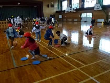 5年生は、2年生と体育館にてペア活動を行いました。どのように関われば2年生と楽しくゲームができるか、わくわくリーダーを中心に5年生みんなで考えました。