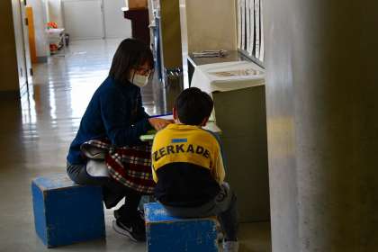 子供たちは、担任の先生から「あゆみ」を受け取り、2学期にがんばったことや自分の成長したことについて振り返りました。