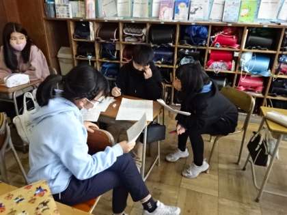 19日、20日に実施した漢字・計算チャレンジテストを返しました。自分が勉強してきた自主ノートを見て振り返ったり、友達と教え合ったりしながら、直しに取り組む姿が見られました。