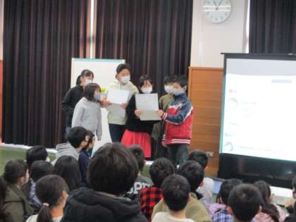 学年委員会で発表会をしました。事前に作った準備物を使い、学年の意識を高める呼びかけや広田小学校に関わるクイズ、仲が深まるゲームの紹介など、活動の紹介やこれからの活動について発表しました。