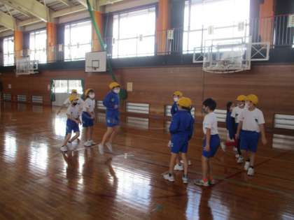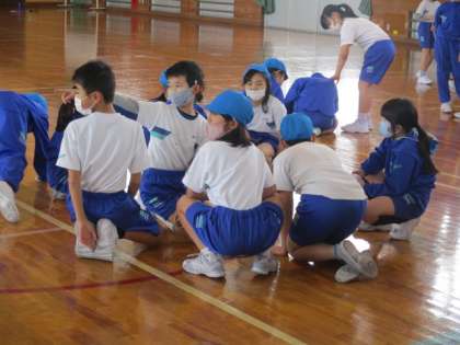 体育科の長縄跳びの様子です。団ごとに新記録を出そうと、緊張感をもって挑みました。団での声かけをし合うなど、前回より一体感が増しています。