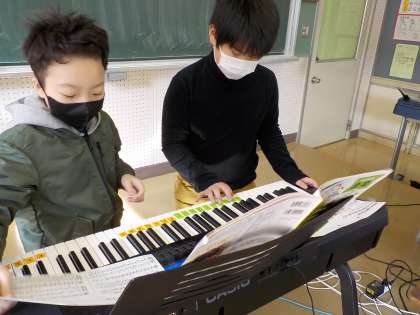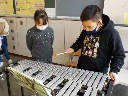 リコーダーの演奏だけでなく、鉄琴と低音楽器の演奏にもチャレンジしました。子供たちは、「難しいけれど、楽しい」とうれしそうに練習していました。