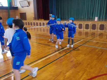8の字跳びをしました。3分間に何回跳べるか、各団で競い合いながら練習しています。