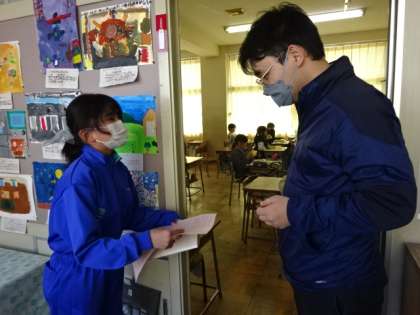 今日は、決まったスローガンや他学年にしてもらいたいことを、担任の先生方に伝えに行きました。リーダーは、どのように話せば分かりやすいのかを考え、ドキドキして教室を出発しました。先生方からいくつか質問を受け、相手の立場に立って計画したり説明したりすることの難しさを学んだようです。「質問の答えに困ってしまった」「もっとしっかり決めて、もう一度お知らせにいこう」と話す子供もいました。