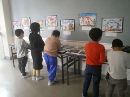 出来上がった版画の作品を、みんなで鑑賞しました。「○○さんの動物は、爪まで細かく切っていて上手でした」「鳥の羽の所が、細かく羽がついていてすごかったです」と、友達の作品のよい所をたくさん見付けていました。