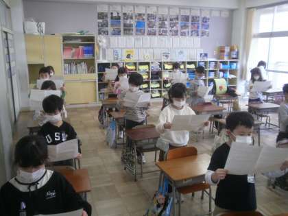卒業式で歌う「大空がむかえる朝」の練習をしています。「保育園でも歌ったことあるよ」という子もいました。
