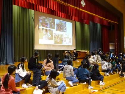 集会の終わりには、6年生からお返しの演技がありました。5年生を始め在校生たちに、お礼とエールをしてもらいました。5年生は、「6年生に喜んでもらえてよかった」「6年生に逆にサプライズをもらえるなんて、しっかりと気持ちを引き継ぎたいな」など、気持ちを新たにしていました。