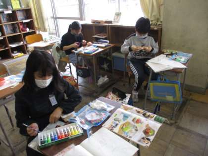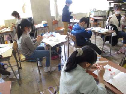 図画工作科の学習で「元気のおまもり」を作りました。粘土の形を変えたり、色を塗ったりして、自分にとっての「元気」を作品に表しました。