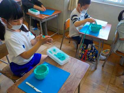 2年生 図画工作科「ひもの粘土で器を作ろう」