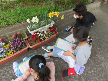 図画工作科では、「植物」をテーマに、自分が描きたいものをよく見てスケッチしました。