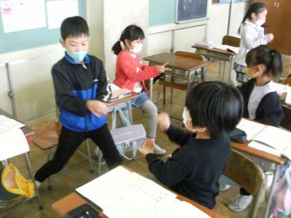 算数の学習の様子です。「じゃんけんゲーム」を通して、0のかけ算の仕方について学びました。