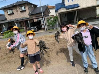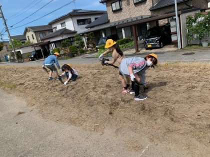 コスモス畑の整備をしました。コスモス畑を進んできれいにしようとする子供たちの姿が見られました。