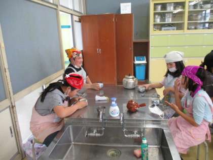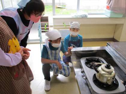 湯を沸かしてほうじ茶を入れて味わいました。茶葉とお湯の分量を確かめておいしくいただきました。