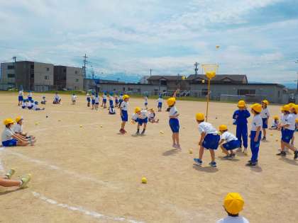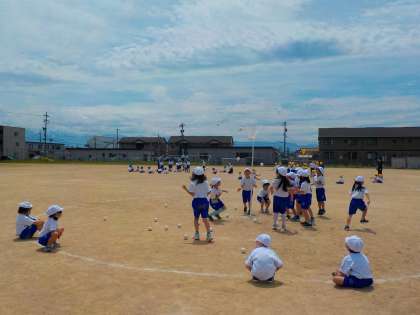 競技中は、とても楽しそうに玉を投げたりダンスをしたりしています。大きな声で数を数え、たくさん入ったことを全身で喜んでいます。