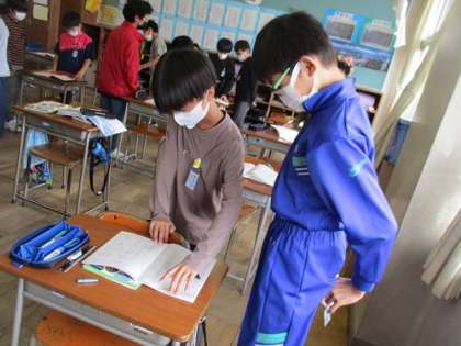 6年生では、仲間の自主学習ノートを見合っています。「○○さんは、学習した内容についてもう一度書いたり、自分で作った問題を解いたりしているね」「自分で学習課題を考えて書いているのにはびっくりした。私もやってみようと思った」など、新たな学習方法を見付けていました。これからも「自分のための学習」に合った内容や方法を、子供たちと考えながら続けていきます。