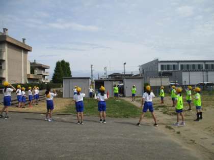 結団式も終わり、全校での応援練習を続けています。今日は、朝の練習後に、5・6年生で合同練習を行いました。「全校応援練習では、なかなか声を出すことができなかった」や「もっと堂々としっかりと声を出す必要があったから、もっと練習しよう」と意見を出し合いながら、練習を続けています。