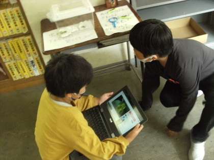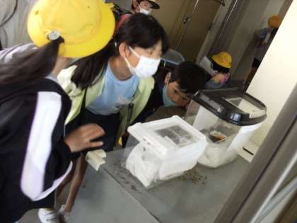 成虫になったチョウを観察しました。登校してすぐにランドセルを背負ったまま観察している子供の姿から、高い意欲とチョウへの熱い思いを感じました。