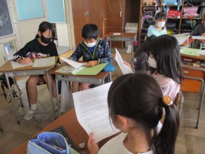 いよいよ8日は五箇山への校外学習です。南砺市役所からいただいた質問の返事を参考にして、それぞれが何を調べたいかを確認し合いました。みんなで安全に気を付けて行ってきます。