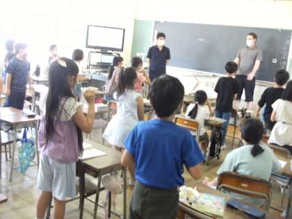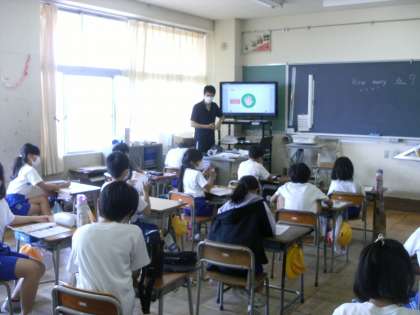 外国語活動の様子です。英語で数字を発音したり、様々な国のジャンケンをしたりしました。