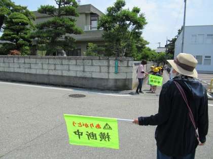 出発前には、玄関に整列し校長先生やお世話になる保護者ボランティアの方に元気よく挨拶をしました。公園へ行く道もボランティアの方に見守られながら、安全に気を付けて歩きました。