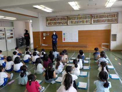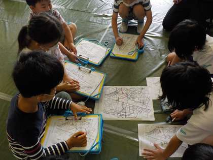 今日は町探検に向けてグループごとに集まり、探検のコースを地図に書き込んだり、探検の目当てを決めたりしました。子供たちは、町探検が楽しみで、わくわく、どきどきした様子でした。安全に気を付けて、たくさんすてきを見付けてきたいと思います。