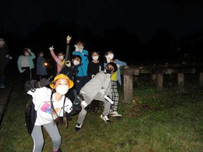 夜の活動では、ナイトハイクを行いました。昼の森の中とは違った夜の森の雰囲気を味わいました。