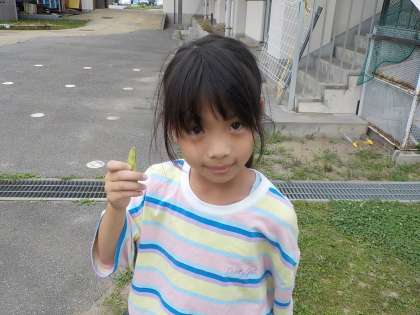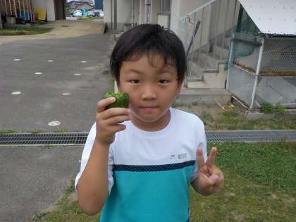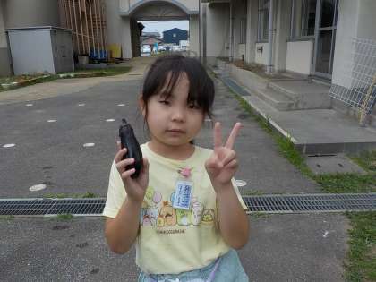 5月から大切に育てている野菜ですが、いよいよ初収穫ができるまで大きくなった野菜もでてきました。初収穫した野菜は家に持ち帰り、食べたり、観察したりします。子供たちは早く食べてみたくてわくわく、どきどきしていました。