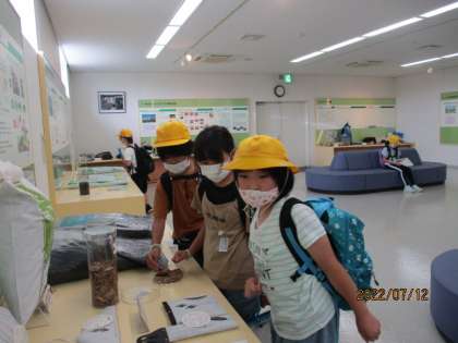 校外学習で、富山市エコタウン交流推進センターに行きました。子供たちは、富山市で一日に出るごみの量を知り、とても驚いていました。その後、ごみがどんな物にリサイクルされるのかを実際に見て、学びを深めていました。