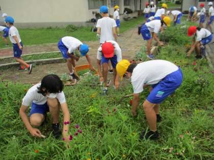 練習の後は、学校花壇の草むしりを行いました。1学期もあとわずか、今できることに精一杯取り組んでいます。