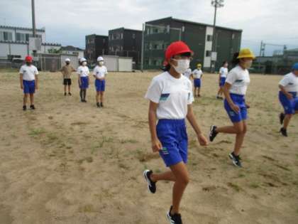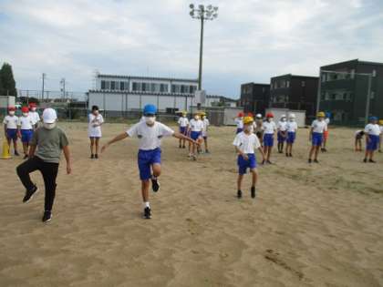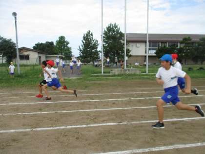 チャレンジ陸上記録会に向けて、6年生は朝の陸上練習に励んでいます。夏休み中に自宅でもできる練習を続けている子供もいて、少しでも記録が伸びるようにがんばっています。今日は50m走の計測を行いました。「スタートダッシュの姿勢はあまり低くしすぎないようにしよう」「手をしっかりと振ることを忘れないようにしよう」など、練習のポイントを意識して走る姿が多く見られました。6年生の元気な声が、久しぶりにグラウンドに響いていました。