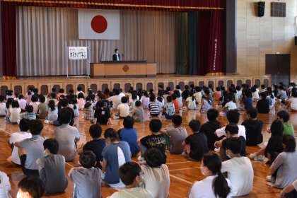 今日から、2学期のスタートです。体育館で始業式を行いました。
