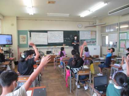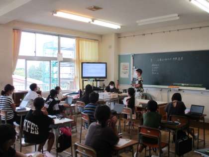 五箇山と似た世界遺産について発表しました。屋根の形、蚕など、1学期に五箇山で感じたことを基に、他の世界遺産を見つめています。五箇山以外の世界遺産にも、興味が出始めています。