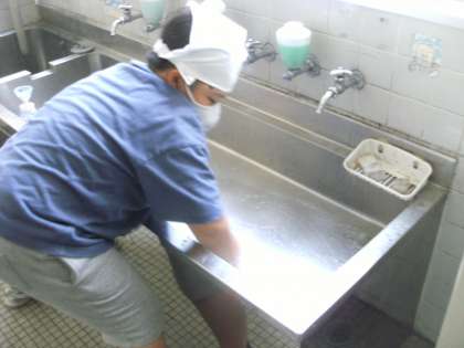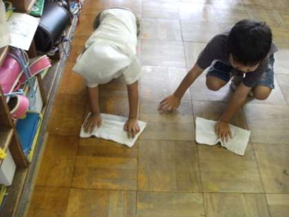 掃除の様子です。自分の担当の場所をきれいにするために、一生懸命に取り組んでいます。