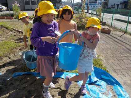 砂場ランドづくりの様子の続きです。声をかけ合い、力を合わせてがんばりました。