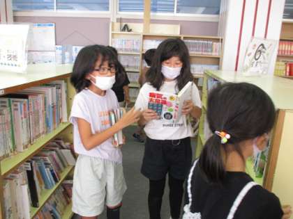 週に1回、図書室に本を貸し借りに行くのを楽しみにしています。どんな本を借りようか、友達と相談しながら選んでいました。