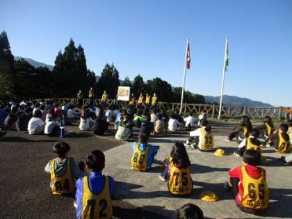 2日目が始まりました。朝のつどいでは、共に宿泊をしている大久保小学校5年生のみなさんと学校紹介をし合い、交流を深めました。