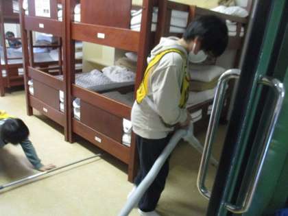 朝の準備では、シーツたたみを仲間と力を合わせてやったり、隅々まで清掃をしたりしました。