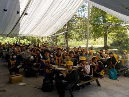 昼食のカレーライスは、どの班も仲間と協力したおかげでおいしくでき上がりました。「自然の中でみんなと作ったカレーライスは、とてもおいしいね」と笑顔があふれていました。「今度は自分だけで家で作ってみたいな」という声も聞かれ、ぜひ挑戦してみてほしいと思います。