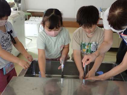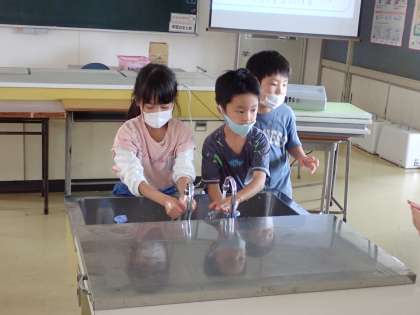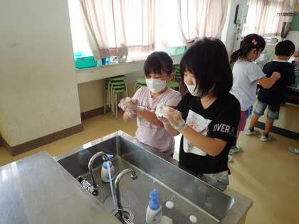「かめさん」「「山のポーズ」と唱えながら手を洗いました。