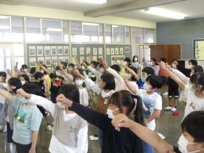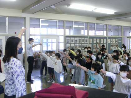 音楽会に向けての合唱練習の様子です。主に「世界を旅する音楽室」の振り付けを確認しました。強弱の付けた歌い方や息の合った振り付けに上達の様子が見られます。