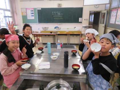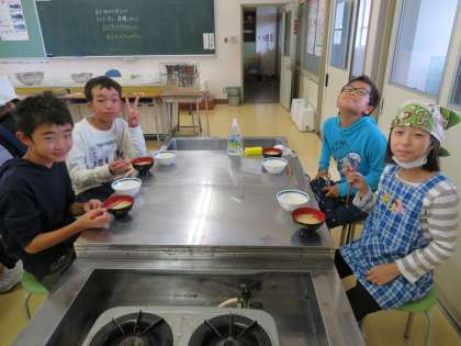 にぼしの出汁のおいしさに、子供たちは感動していました。習ったことを生かして、家でも作ってみたいと振り返っていました。